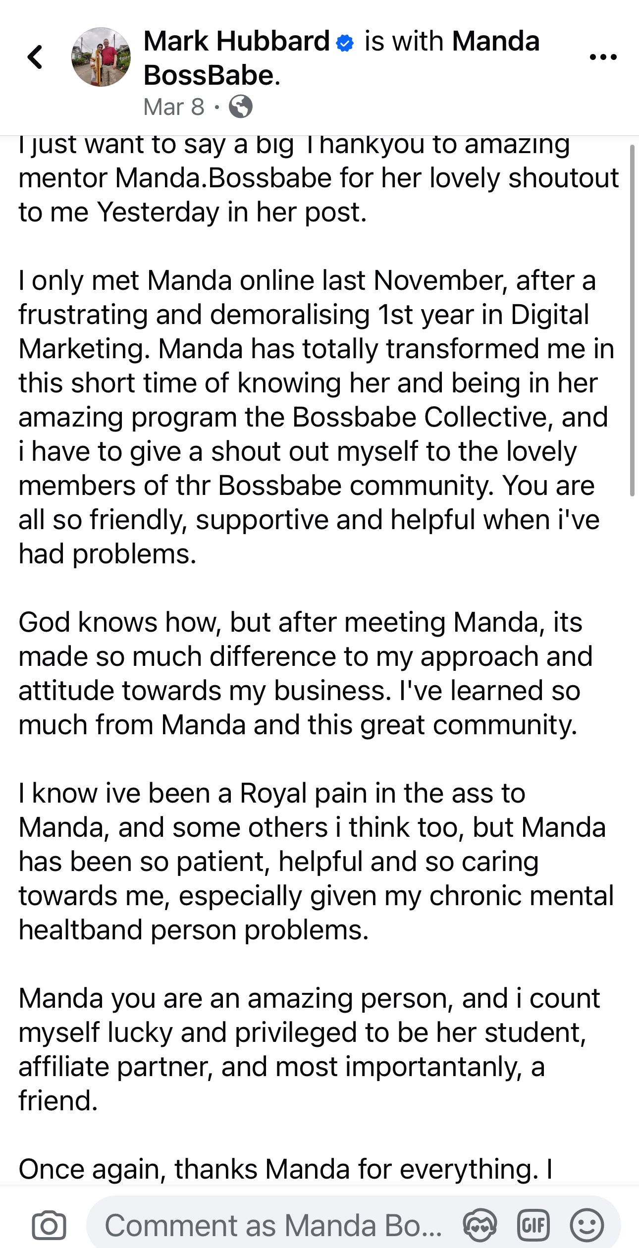 You can usually find her on social media under the handle "Manda BossBabe"—so don’t be shy. Reach out, say hi, and connect.